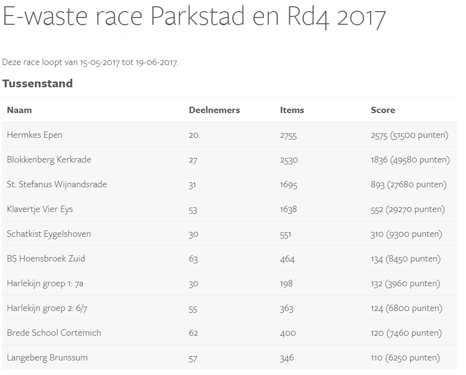 Ingezameld e-waste: 17.917 apparaten | 16.138 kg