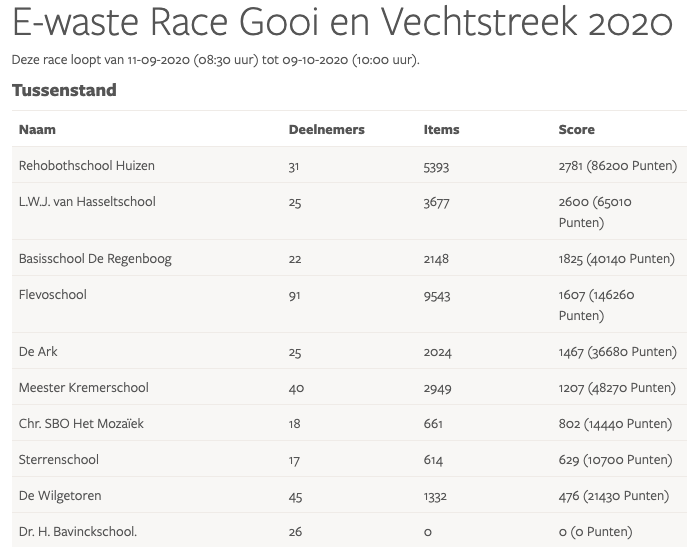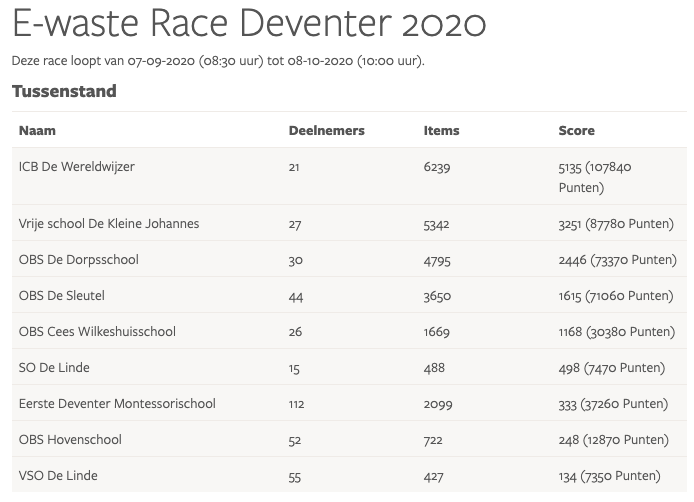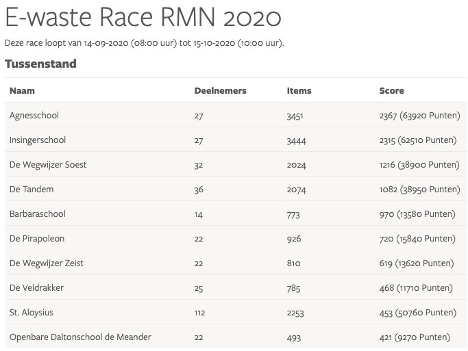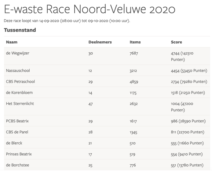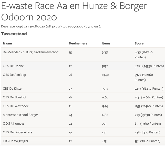 Tijdens dit lesprogramma leerden de leerlingen alles over grondstofschaarste, waar elektronisch afval terecht komt en waarom het belangrijk is dat e-waste naar de milieustraat wordt gebracht en niet in de afvalbak terecht komt. Onderdeel van de online E-waste Race was een prijsvraag waarin de kinderen een eigen campagne moesten bedenken met de boodschap 'Red het e-waste uit de prullenbak', met als prijs een ASUS laptop. Klik hier voor de winnaar!